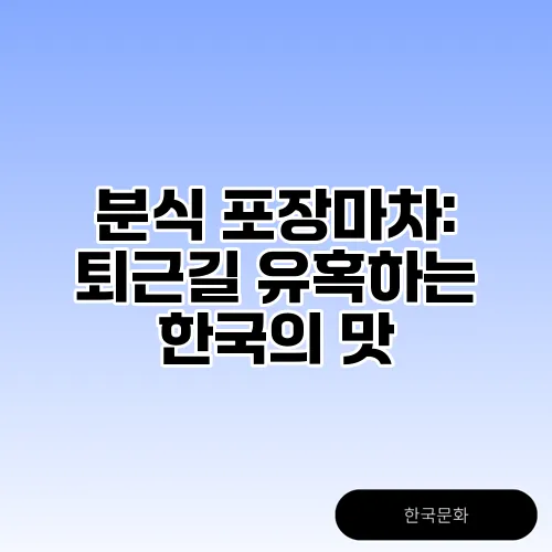 결론적으로, 분식 포장마차는 단순한 음식을 파는 곳이 아닌, 퇴근길 지친 이들에게 따뜻한 위로와 행복을 선사하는 특별한 공간입니다. 저렴한 가격으로 푸짐한 음식을 즐길 수 있으며, 다양한 사람들과 소통하며 정을 나눌 수 있습니다. 특히 한국 길거리 음식의 대표 주자인 분식 포장마차는 포장마차 메뉴의 다양성을 통해 저녁 메뉴 추천에 있어서도 훌륭한 선택지가 될 수 있습니다. 오늘, 퇴근길 분식의 매력에 푹 빠져보는 것은 어떨까요? 분명 후회하지 않을 선택이 될 것입니다.